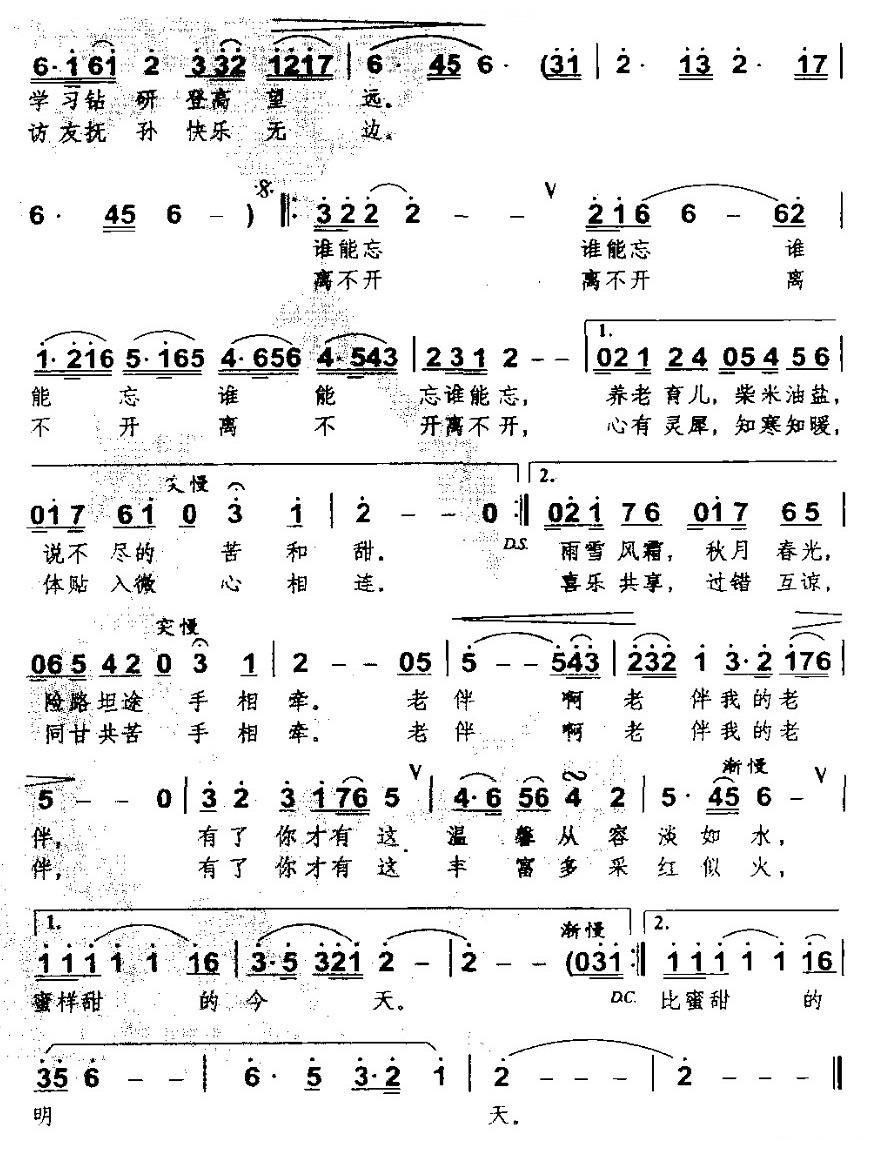 - [歌谱] 老伴
