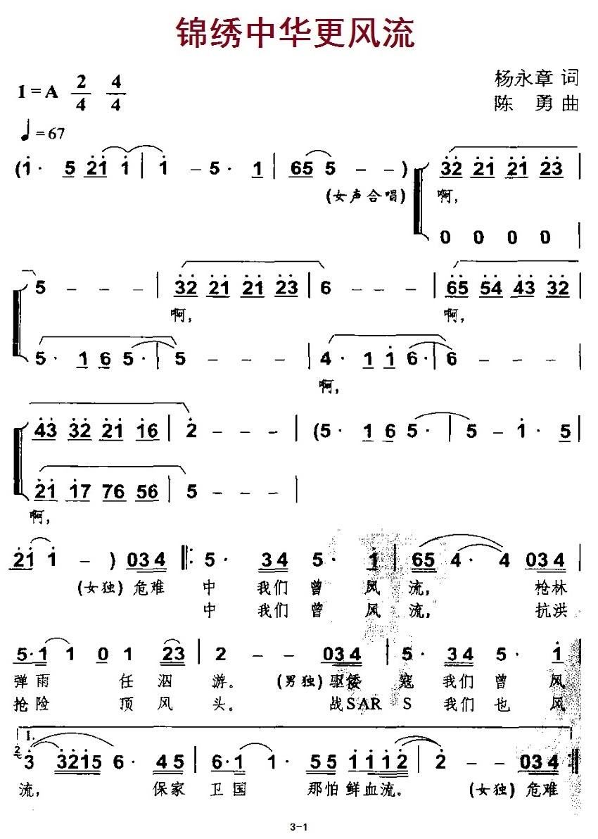 - [歌谱] 锦绣中华更风流