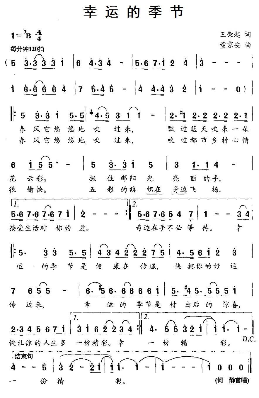 - [歌谱] 幸运的季节