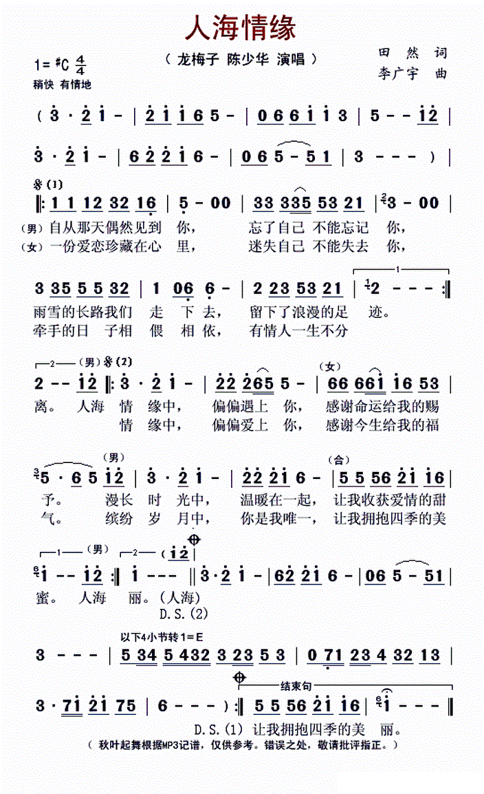 - [歌谱] 人海情缘