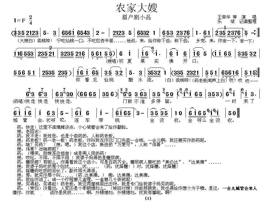 眉户剧小品 农家大嫂 唱谱