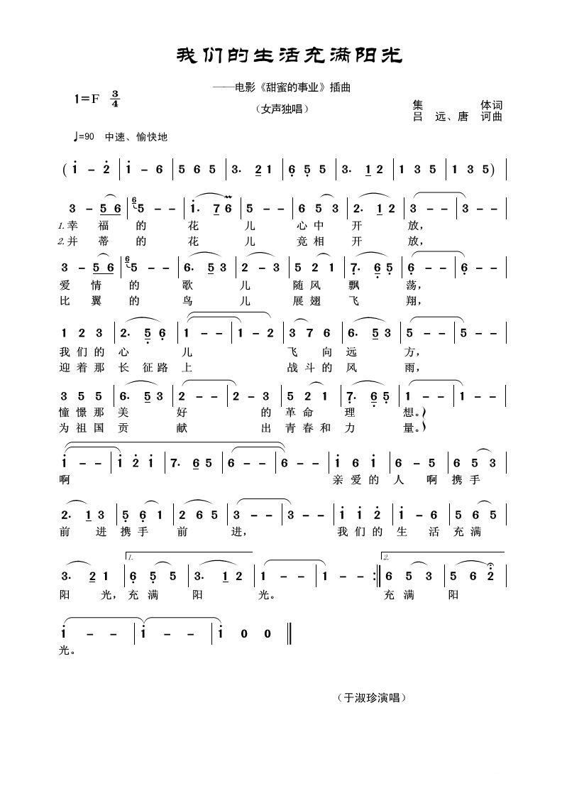 我们的生活充满阳光 电影 甜蜜的事业 插曲 合唱