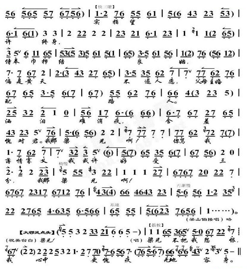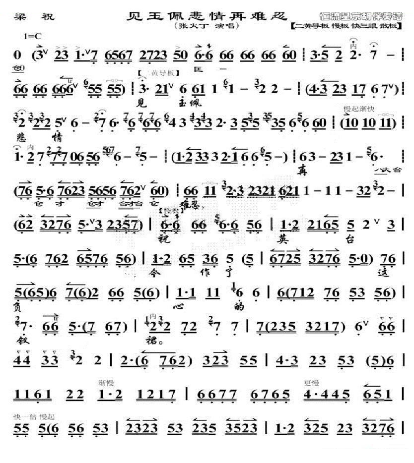 见玉佩悲情再难忍 梁祝 选段 琴谱 京剧唱谱