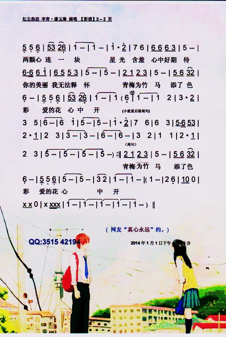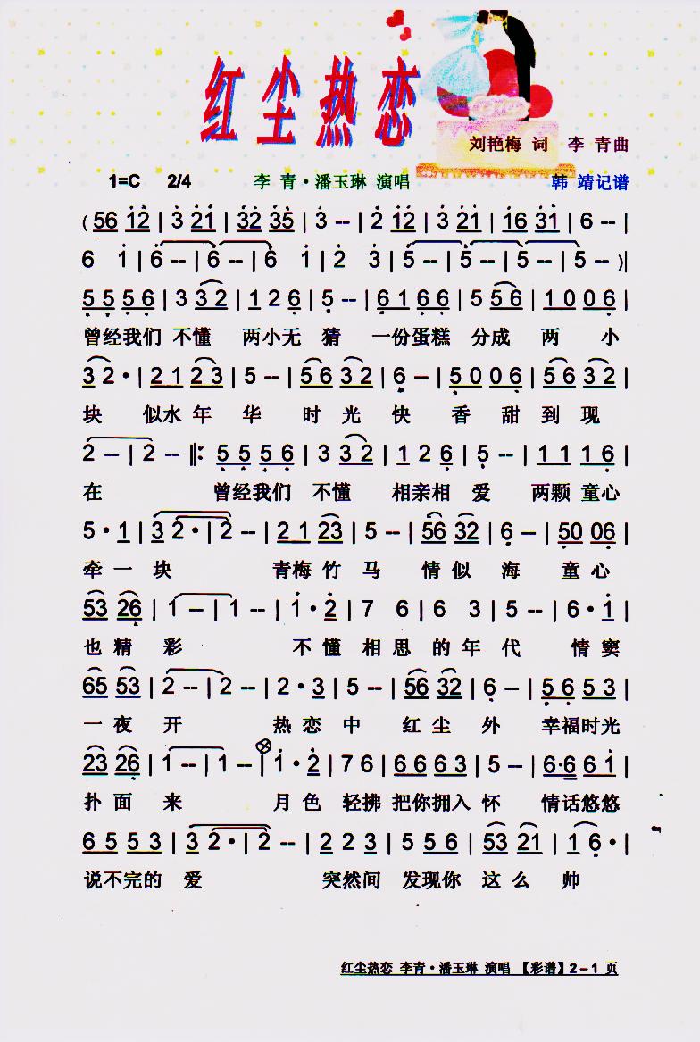 - [歌谱] 红尘热恋 潘玉琳 李青