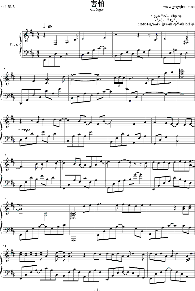 JJ Lin 裂缝中的阳光 钢琴独奏