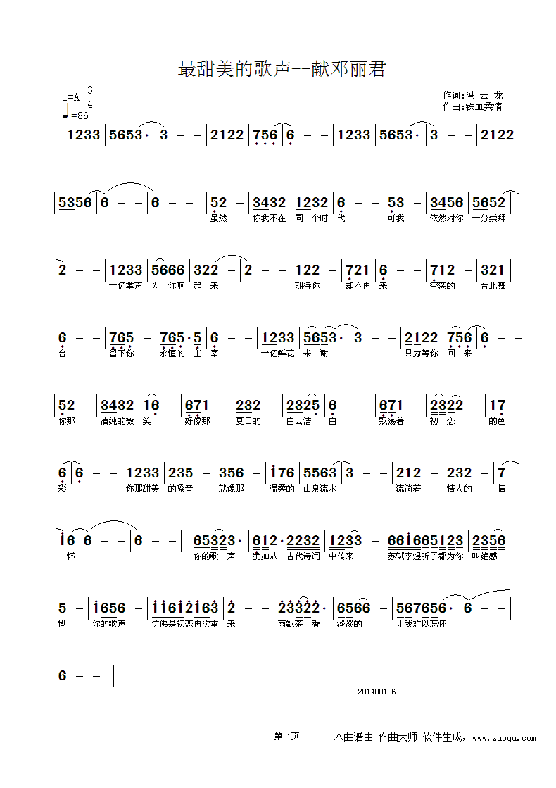 - [歌谱] 我的心随着你甜美的歌声跳动