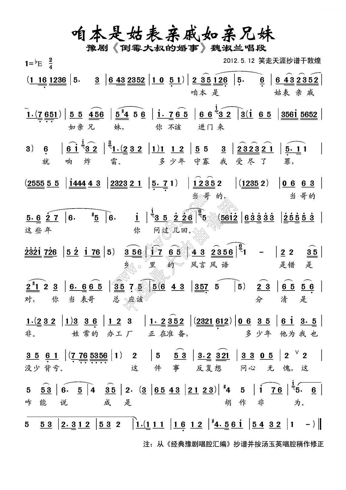 > 咱本是姑表亲戚如亲兄妹 倒霉大叔的婚事 唱段