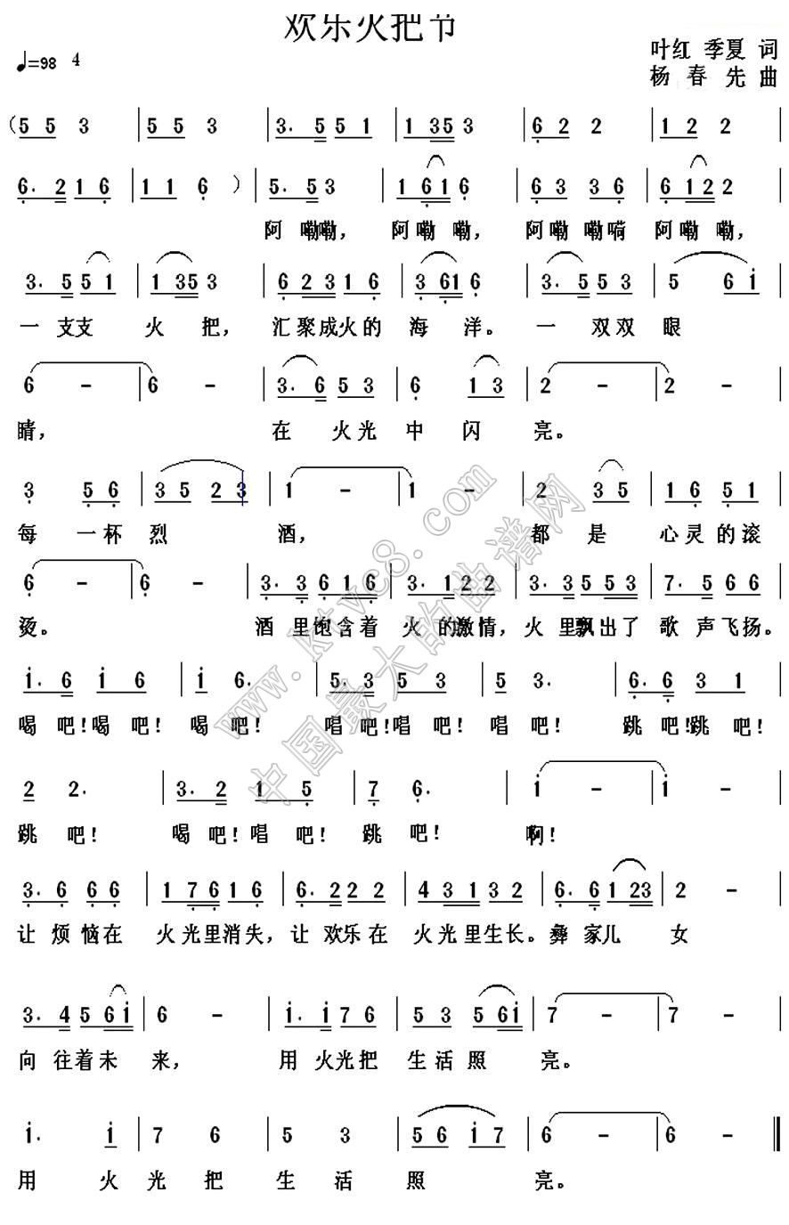 - [古筝谱,扬琴谱] 欢乐地火把节