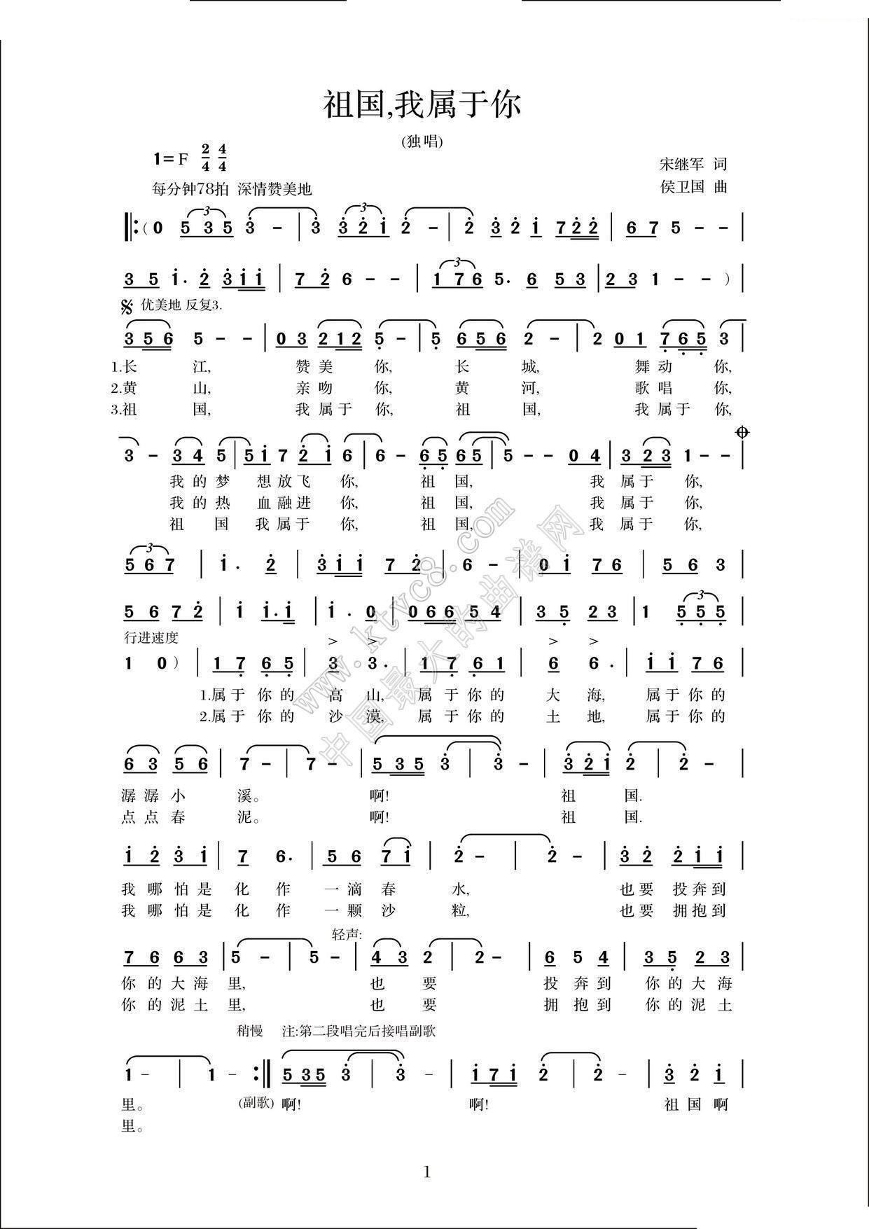 属于你啊我的祖国 彩谱