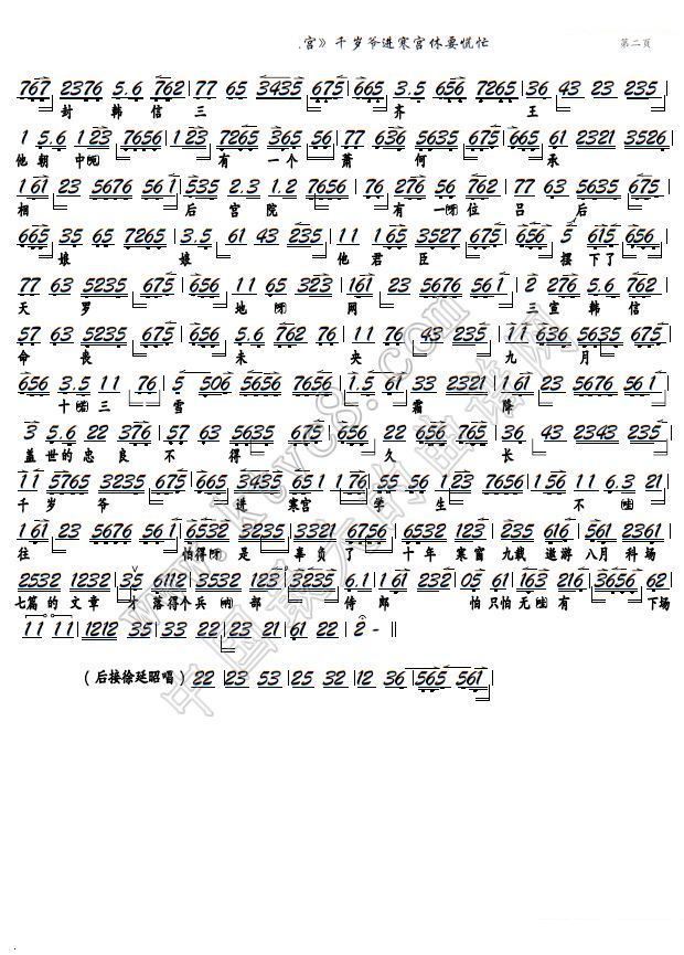 千岁爷进寒宫休要慌忙 京剧 二进宫 选段 京胡谱