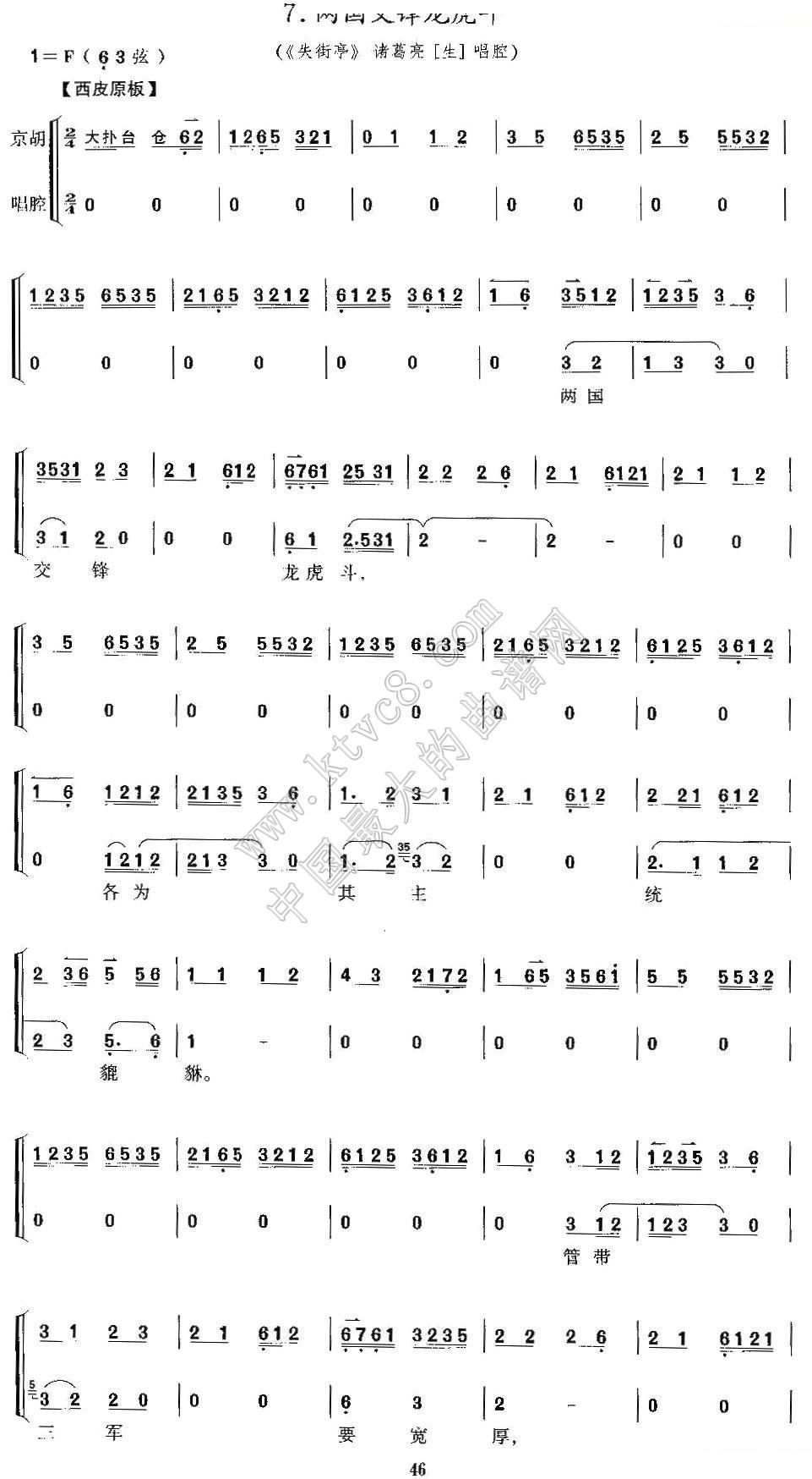 两国交锋龙虎斗 选自 失街亭 诸葛亮唱段 唱谱
