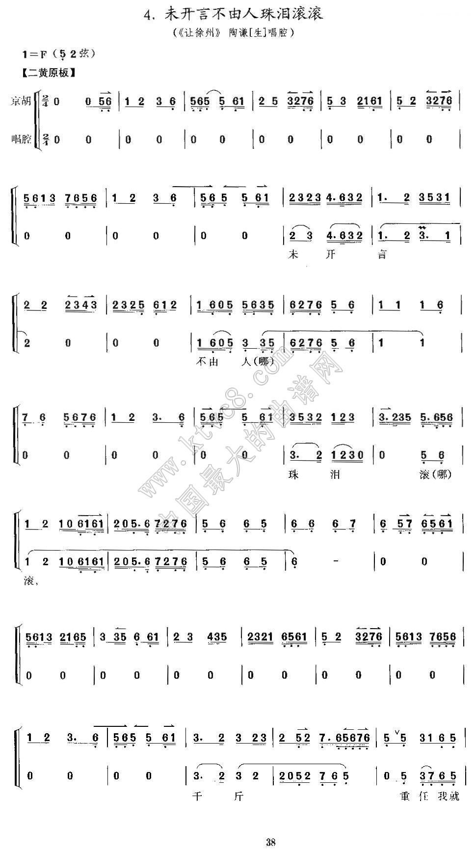 未开言不由人珠泪滚滚 京剧让徐州选段 京胡谱
