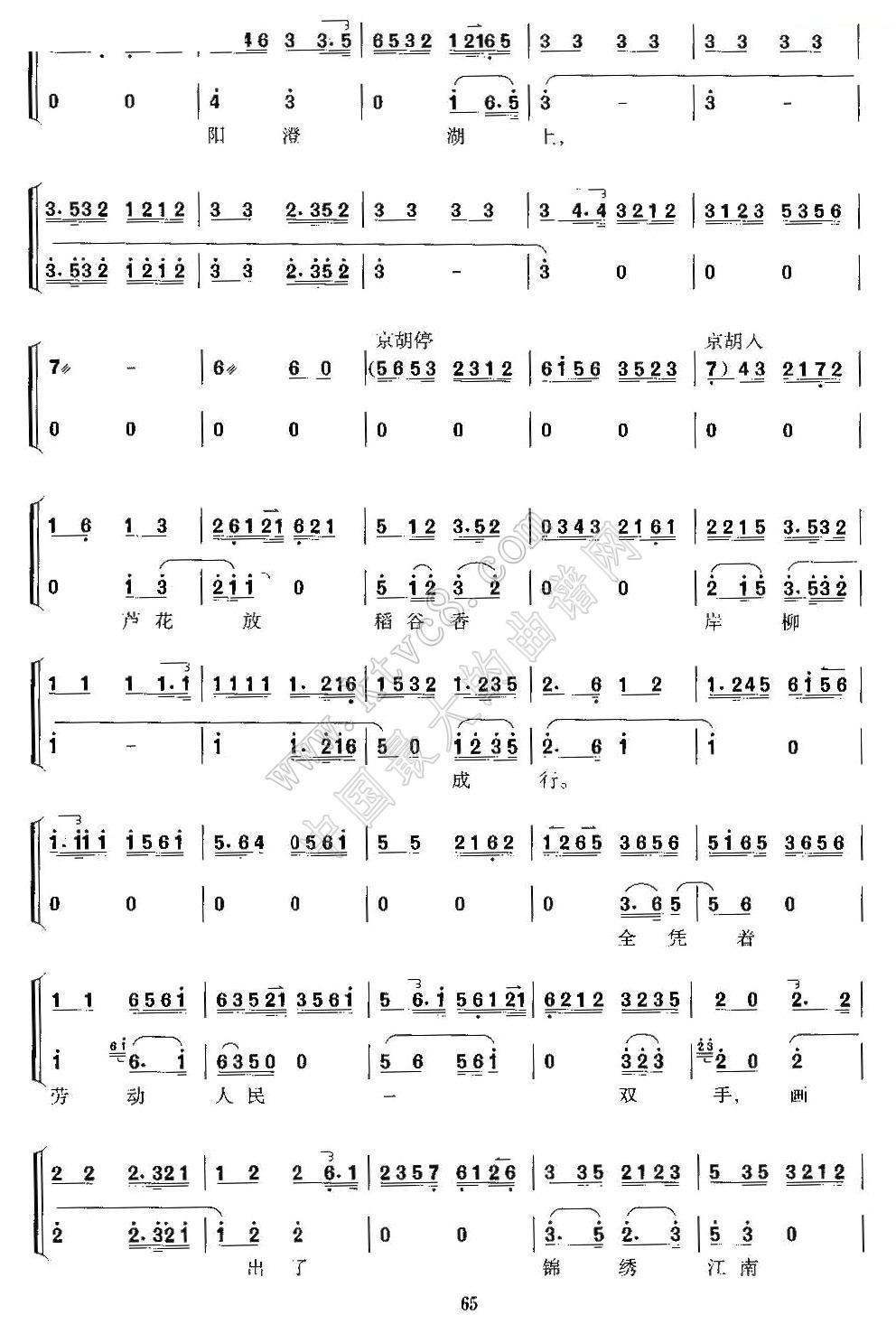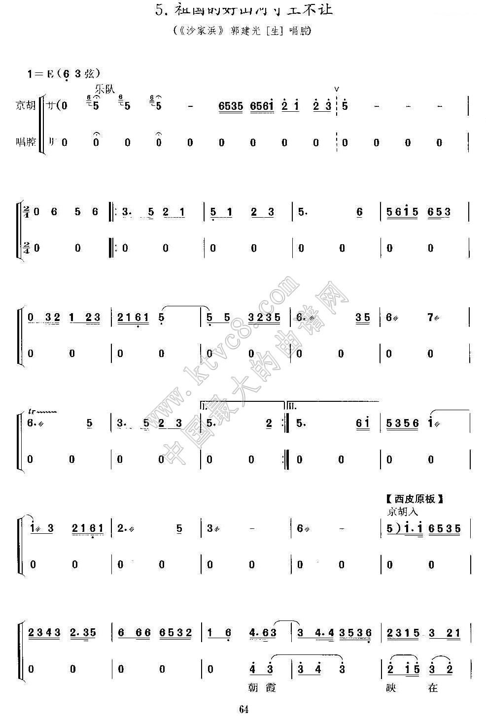 > 祖国的好山河寸土不让 沙家浜 郭建光唱段 二胡考级谱