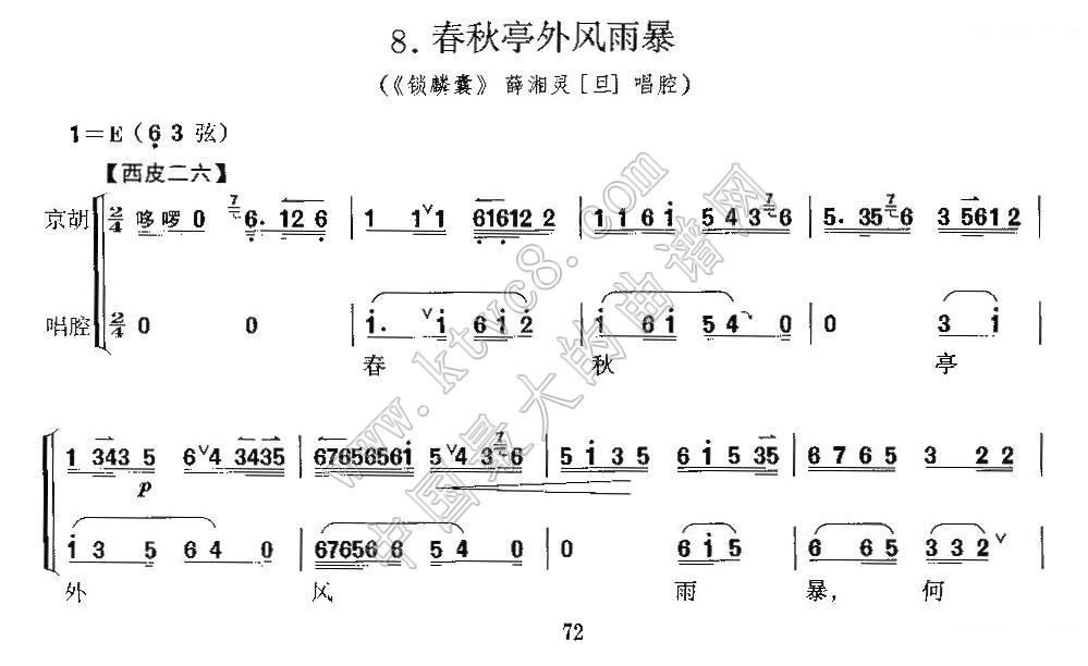 > 春秋亭外风雨暴 锁麟囊 薛湘灵唱段 京胡考级谱