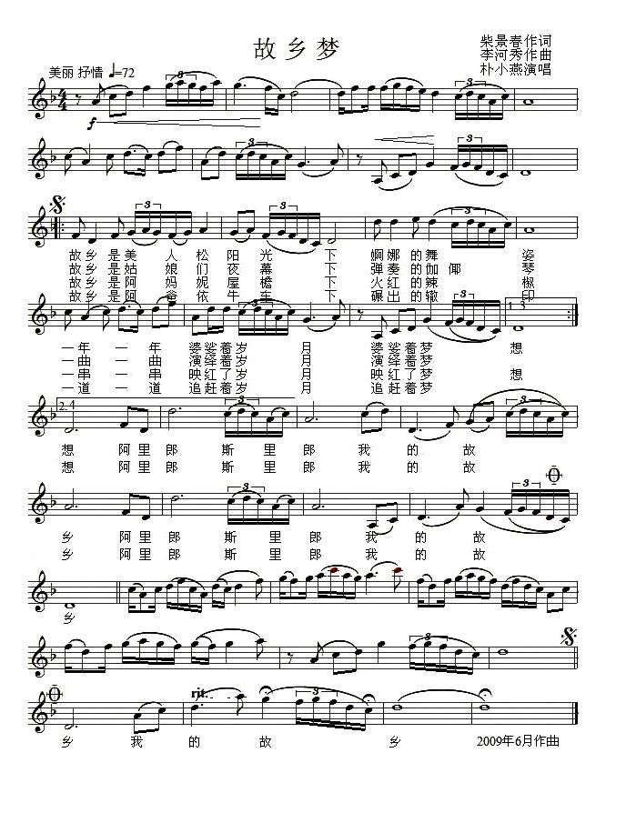 - [歌谱] 故乡梦