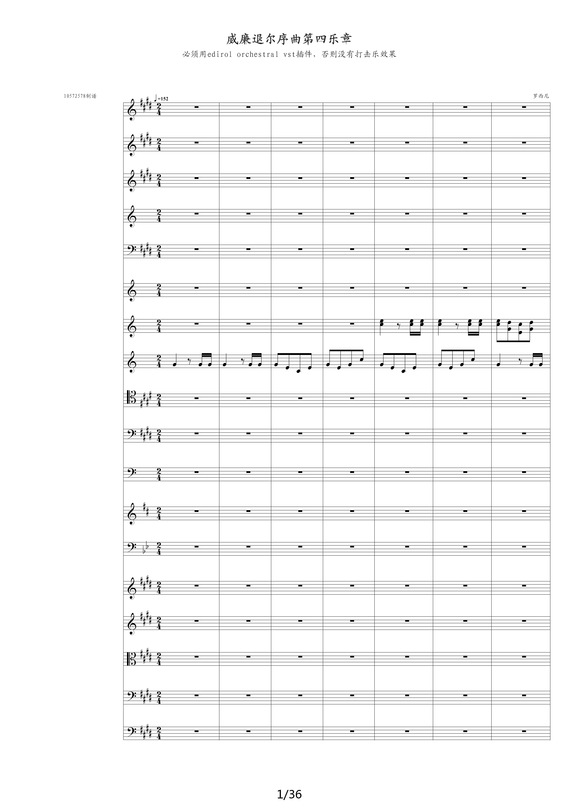> 威廉退尔序曲原版扒谱 E调