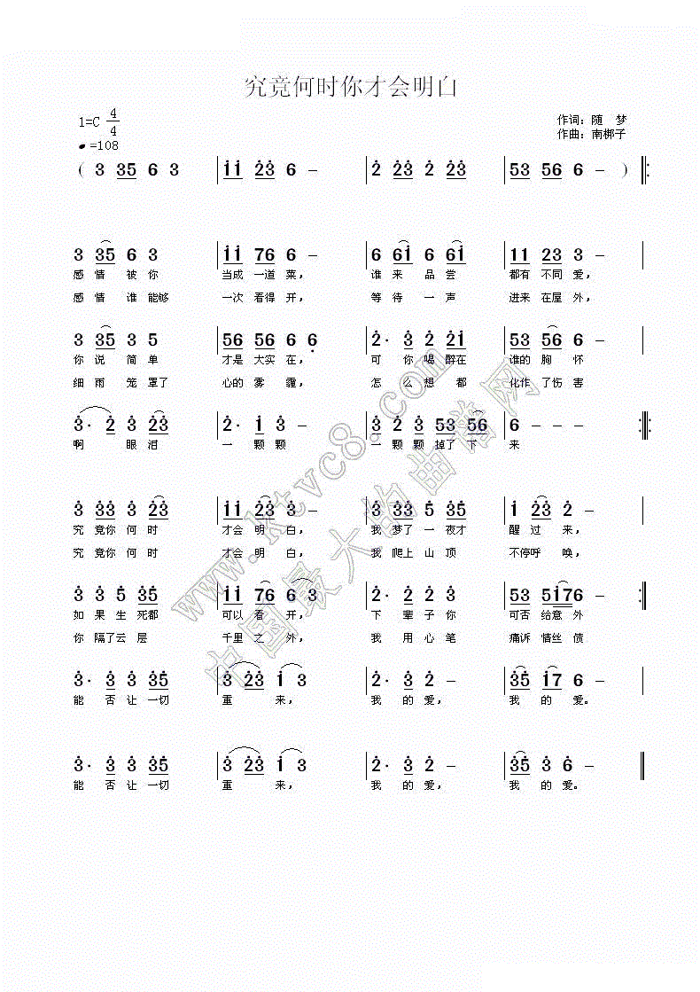 - [歌谱] 想你才明白