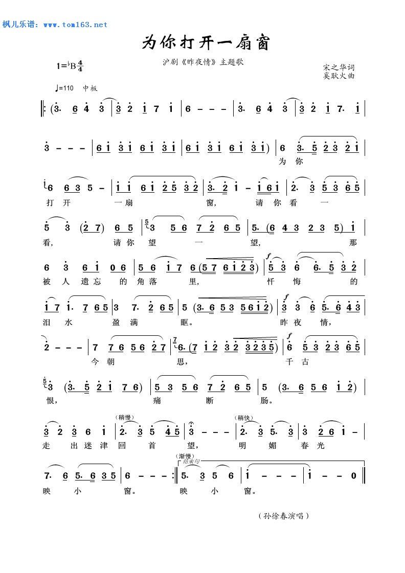 > 为你打开一扇窗 沪剧 昨夜情 主题歌