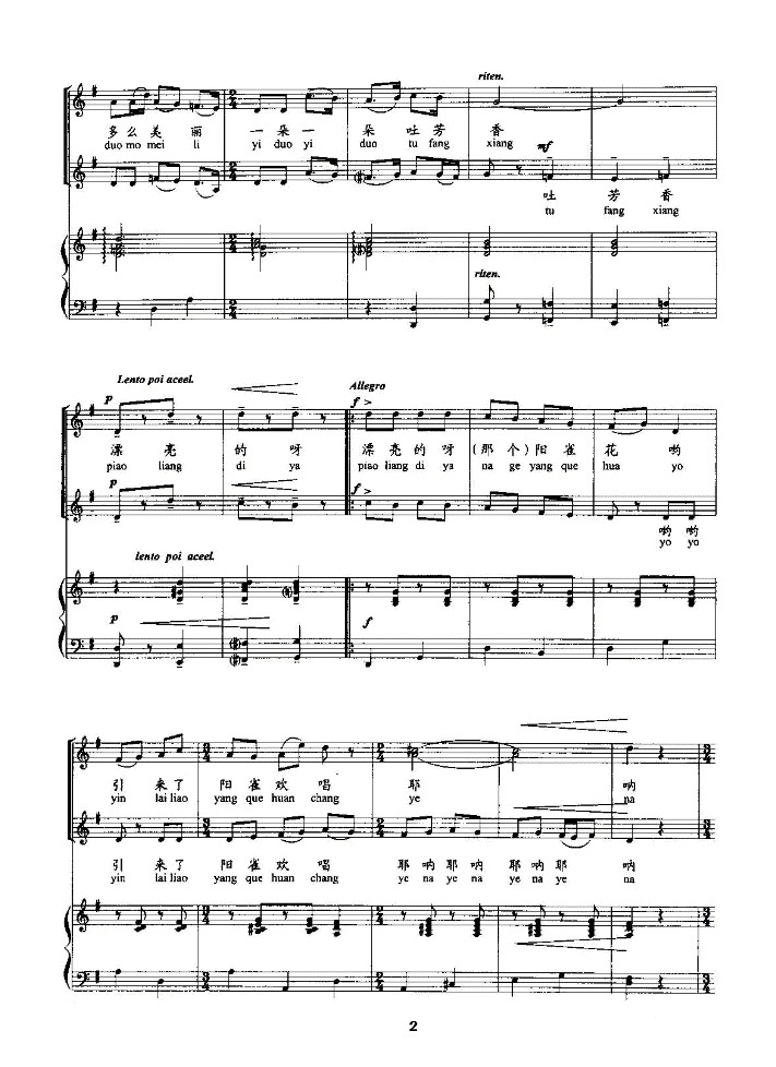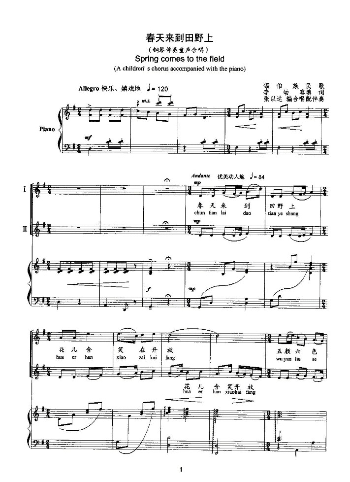 > 春天来到田野上 钢伴谱
