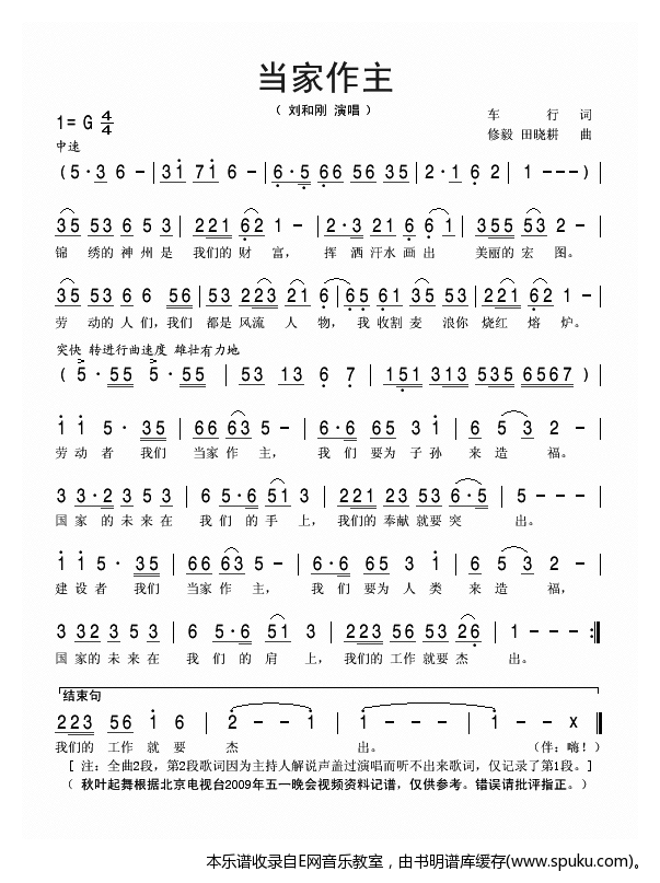 简谱网 > 歌谱 > 当家作主 刘和刚