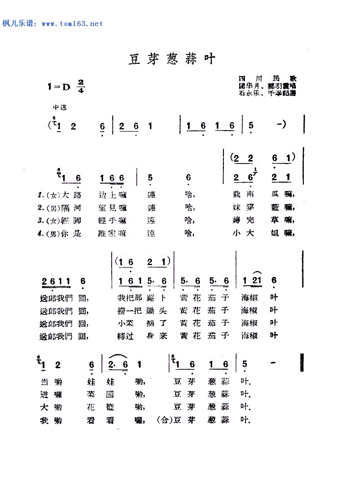 > 豆芽葱蒜叶 四川民歌