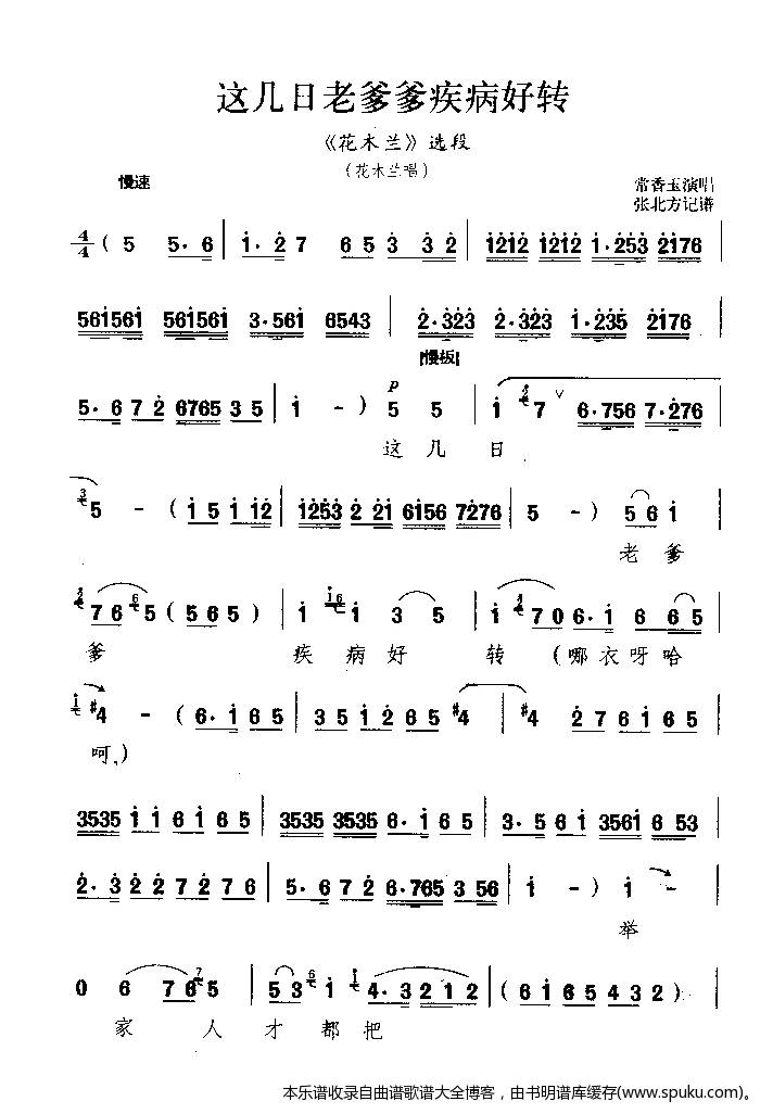 这几日老爹爹疾病好转 常香玉 豫剧 花木兰 选段