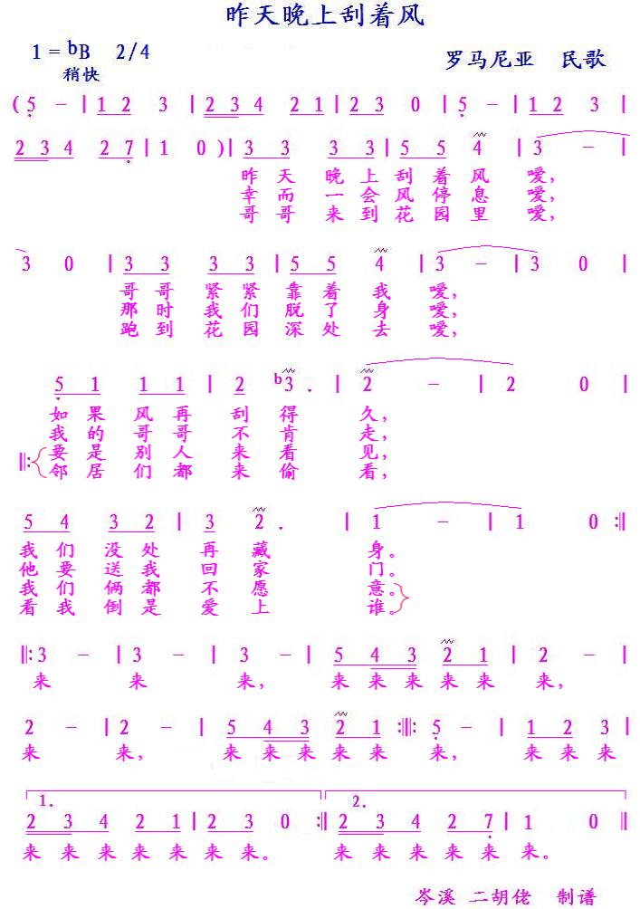 昨天晚上刮着风 罗马尼亚民歌 在路旁 巴西民歌