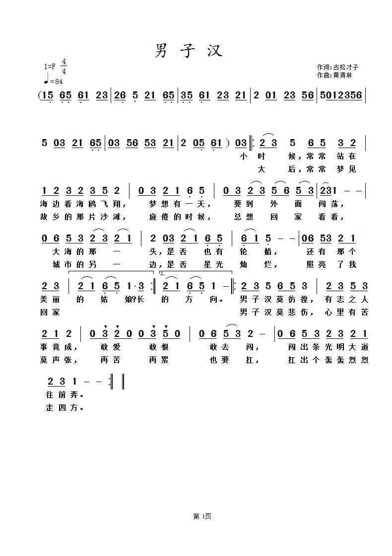 - [歌谱] 男子汉 三角洲作词 黄清林编曲