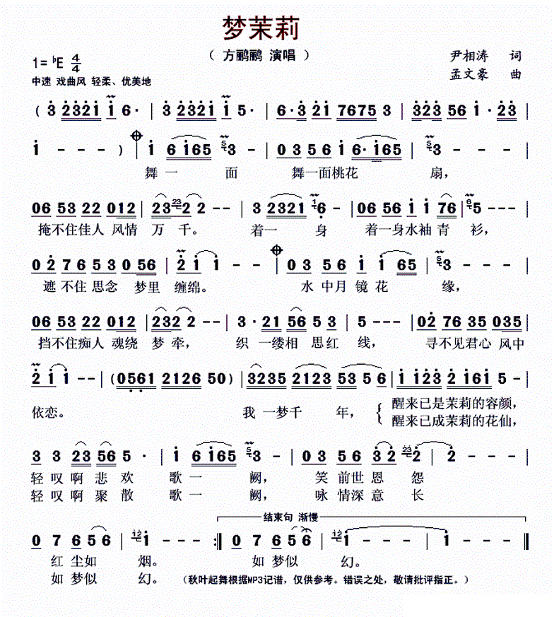 - [歌谱] 梦 茉莉