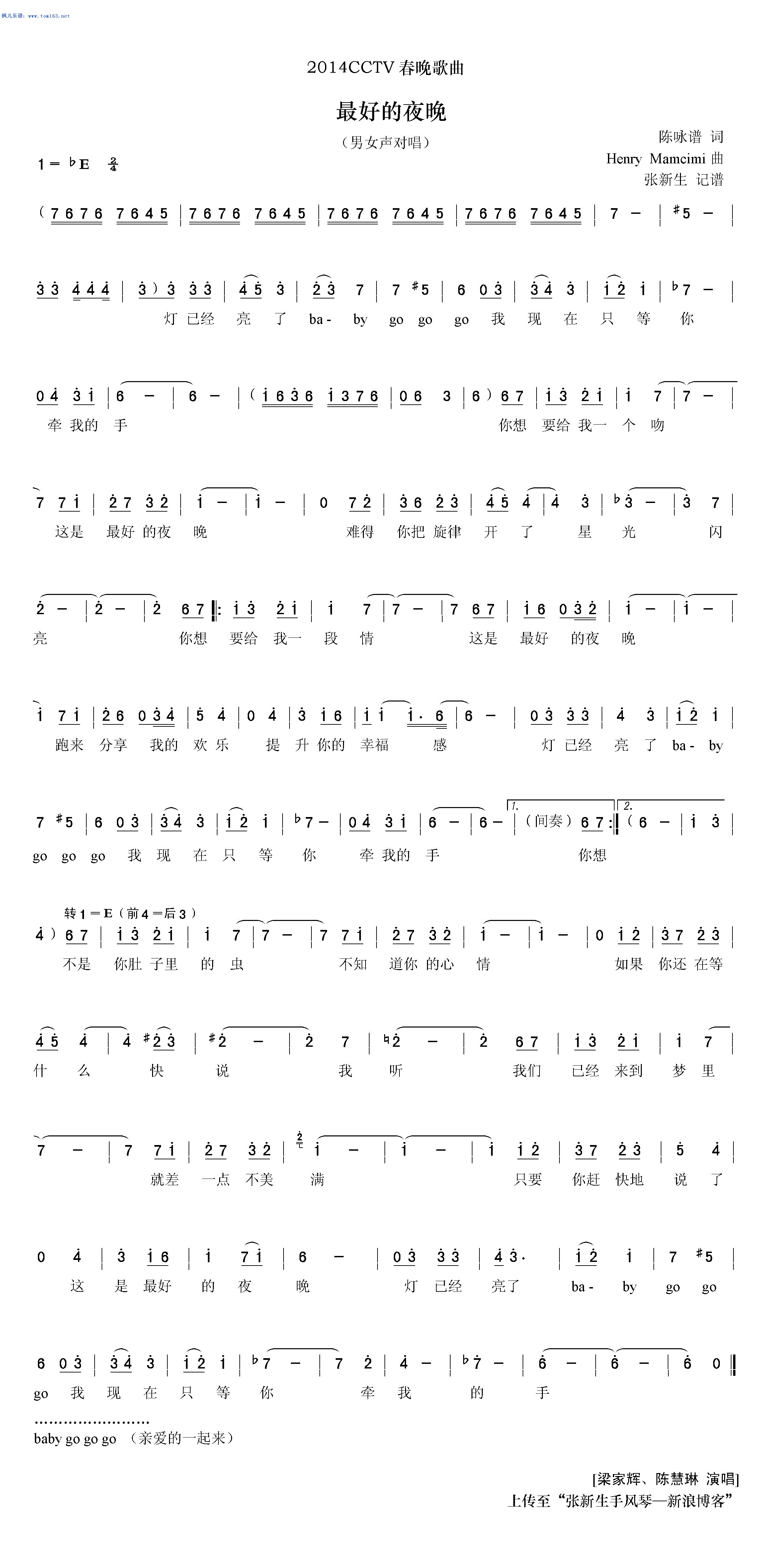 > 最好的夜晚 2014央视春晚歌曲