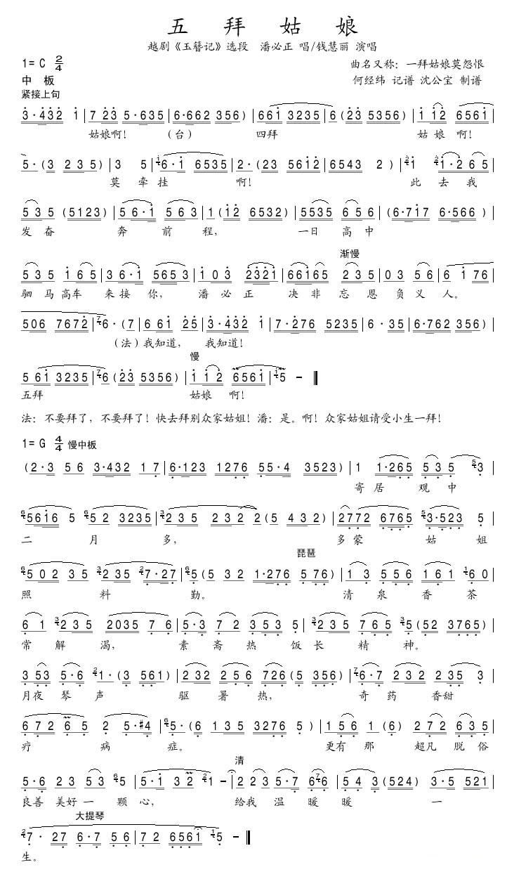 请姑娘放心喝下这暖肚汤 五女拜寿 邹士龙唱段 唱谱