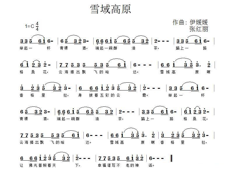 - [歌谱] 雪域高原 曾敏