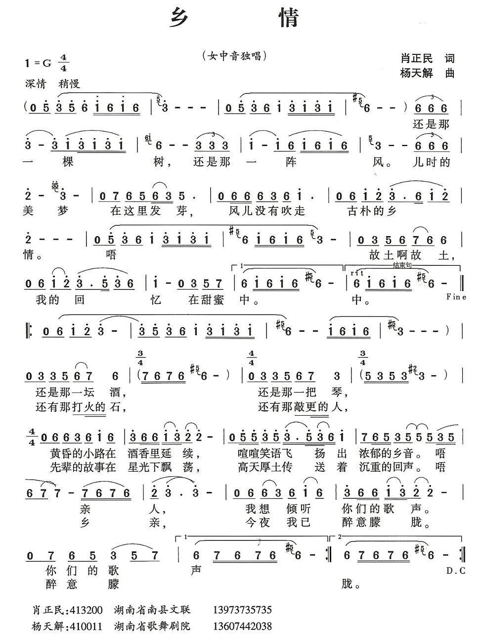 - [歌谱] 乡情