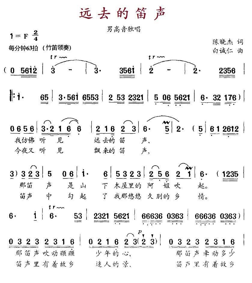 - [笛子谱,歌谱] 远去的笛声