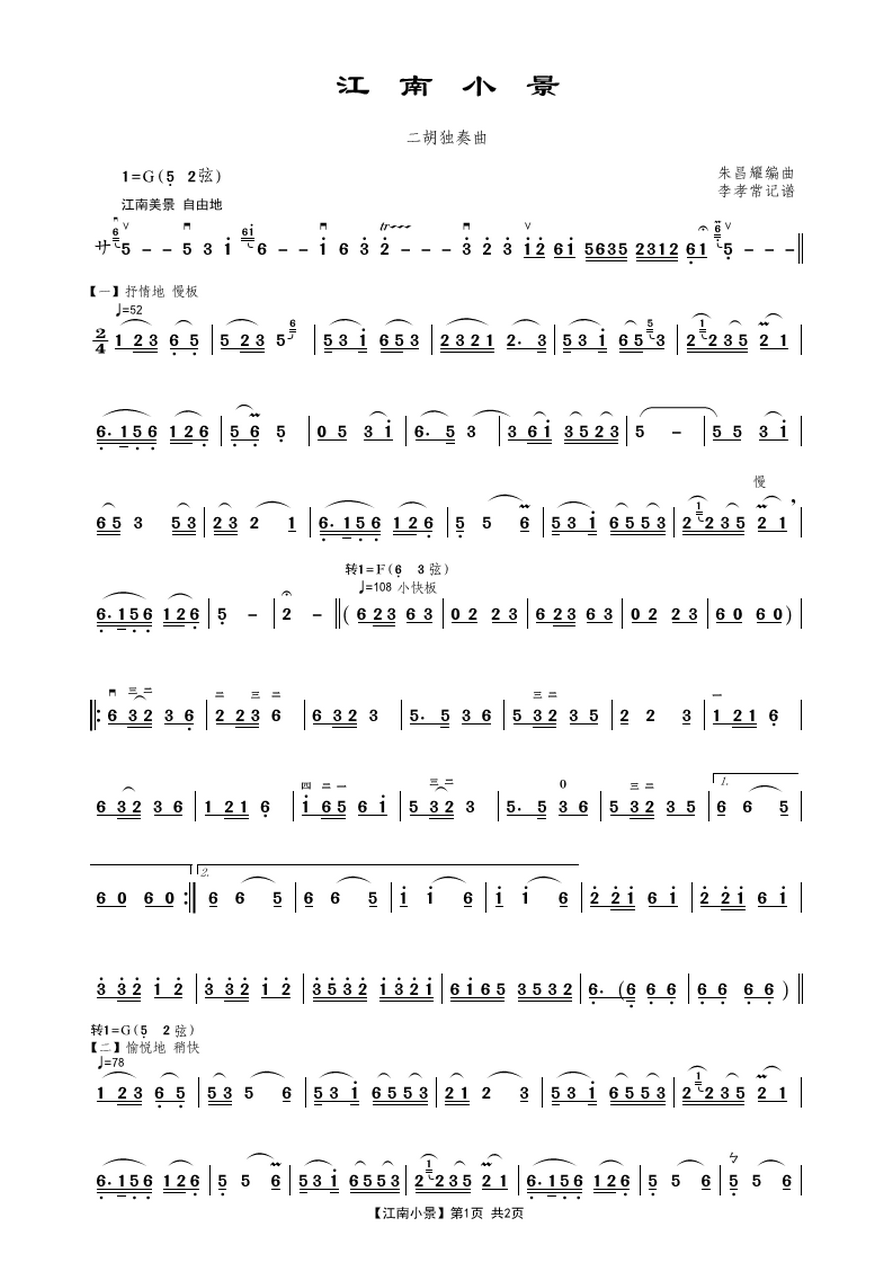 - [二胡谱] 江南小景