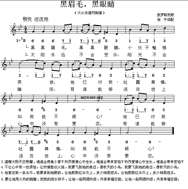 > 俄罗斯民歌 黑眉毛 黑眼睛
