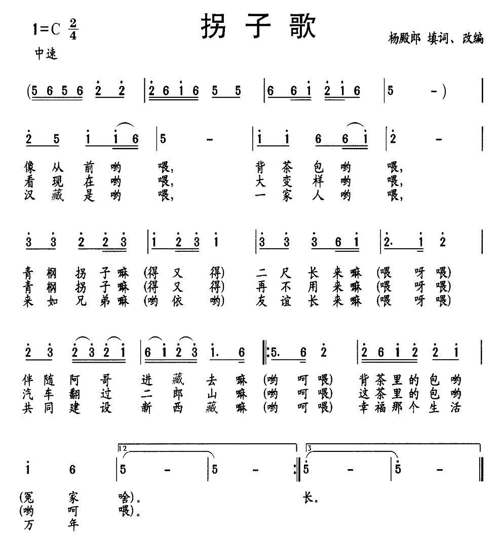- [歌谱] 拐子歌