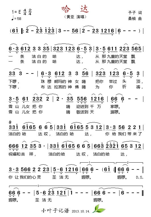 - [歌谱] 哈达