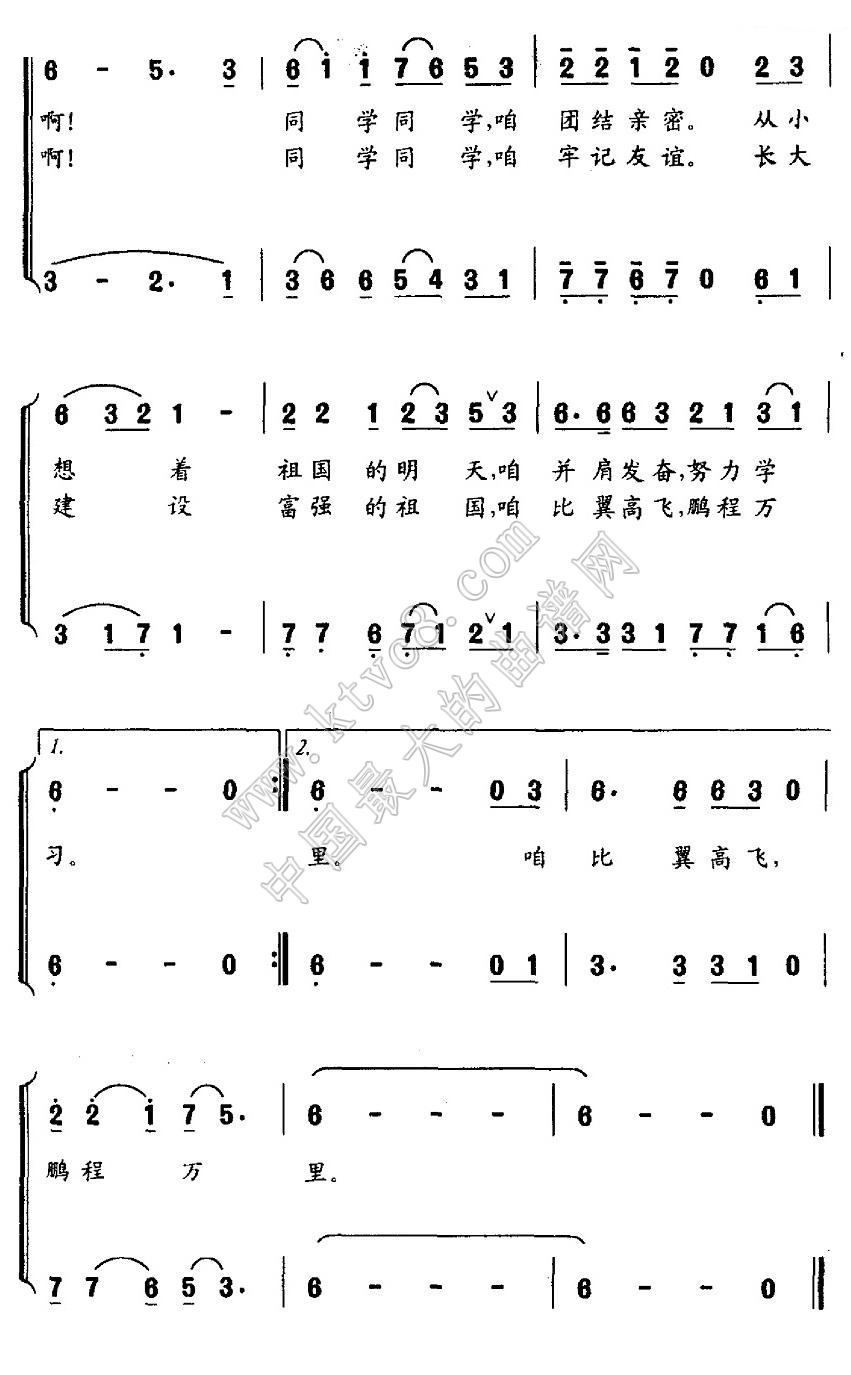 - [歌谱] 同学之歌 合唱