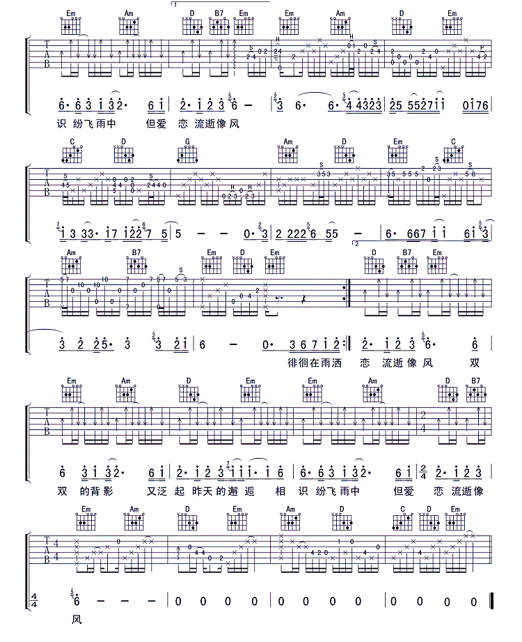 简谱网 > 吉他谱 > 雨中的恋人们