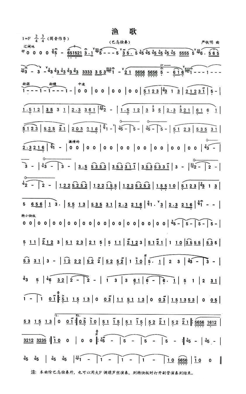 简谱网 > 巴乌谱 > 渔歌 巴乌独奏