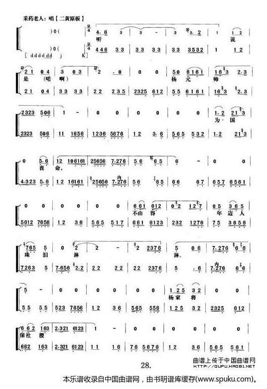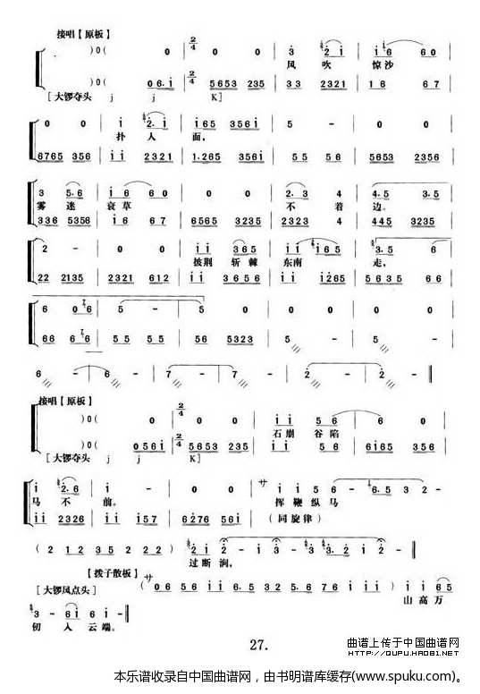 > 杨门女将 第十场 唱谱 京剧戏谱