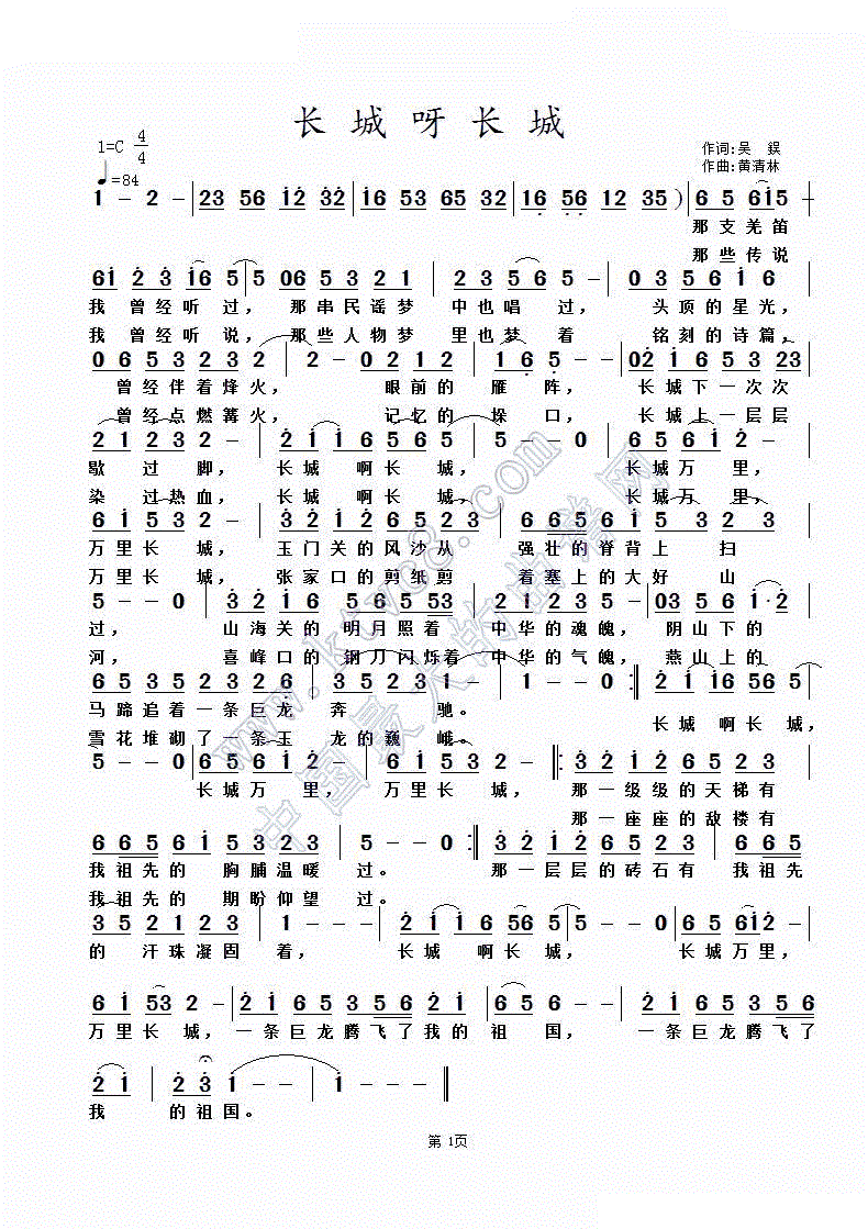 - [歌谱] 长城
