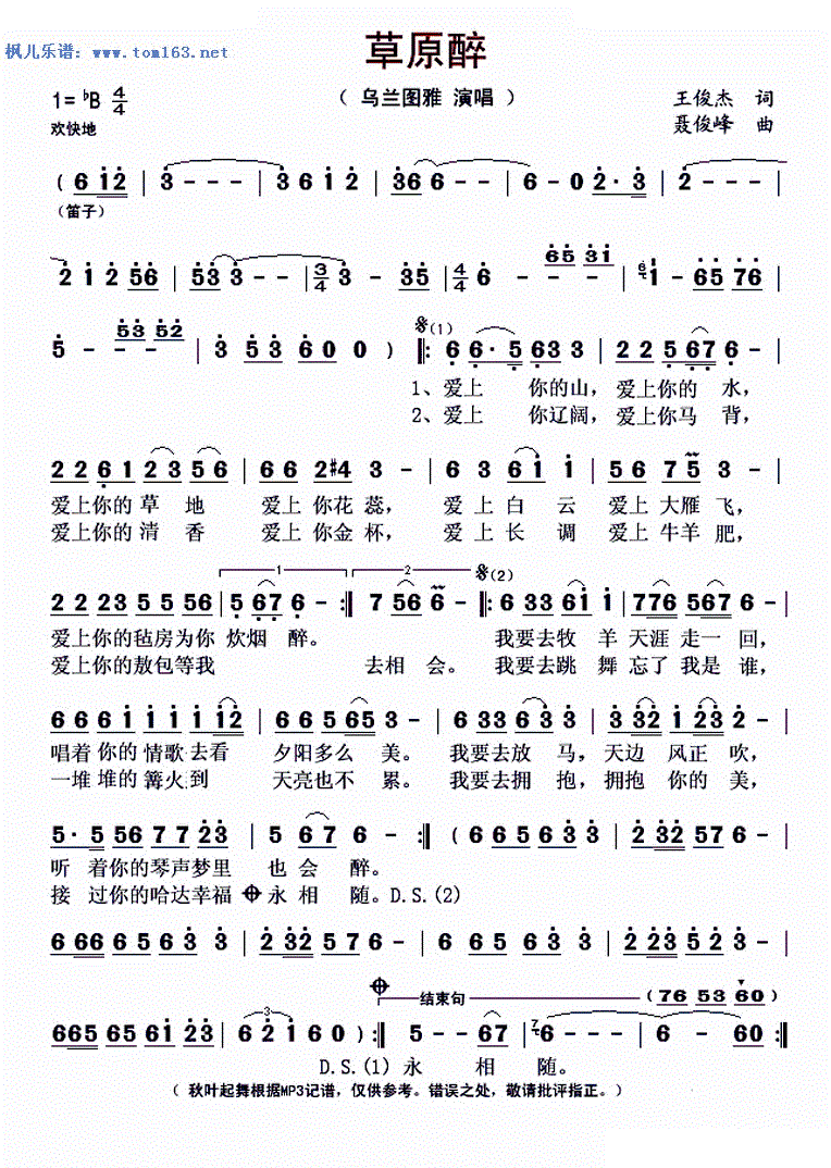 幸福的远方 乌兰图雅 秋叶起舞记谱版