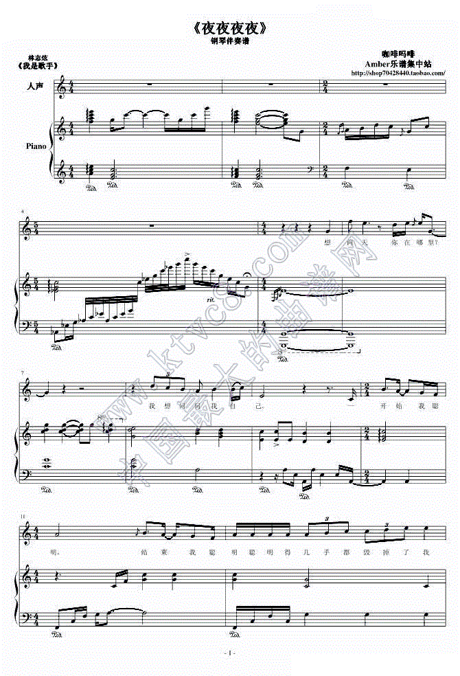 - [钢琴谱] 夜夜夜夜 钢琴伴奏谱