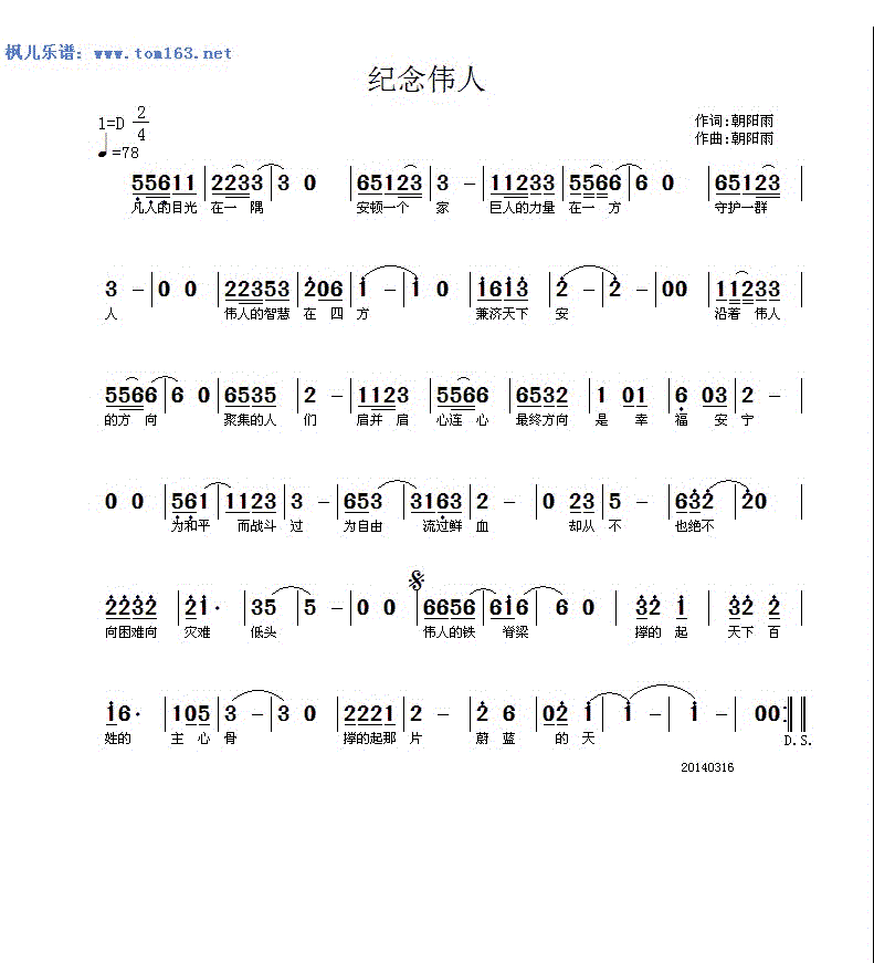 - [歌谱] 感谢春天 纪念一位伟人