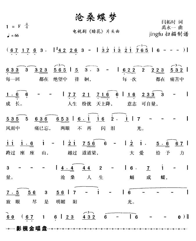 - [歌谱] 沧桑蝶梦 电视剧 暗花 片头曲