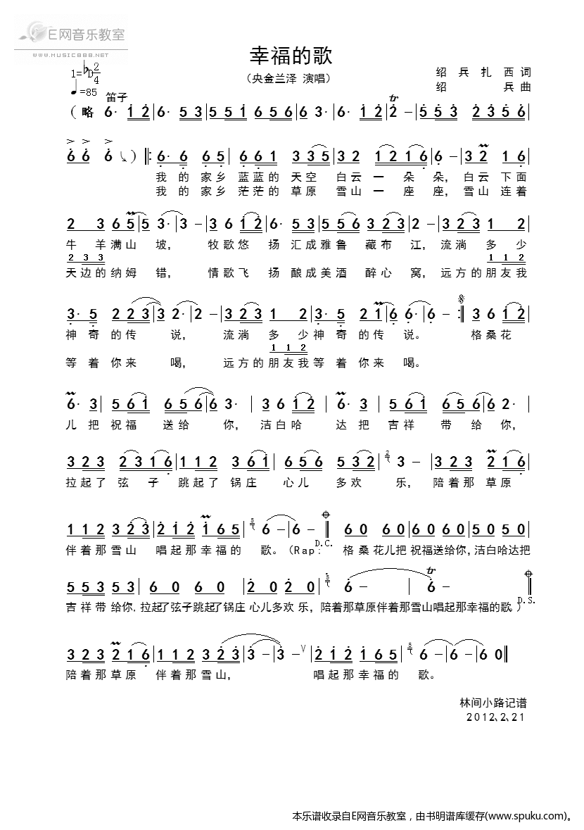 - [歌谱] 央金兰泽新专辑 幸福的歌 全部 地址集