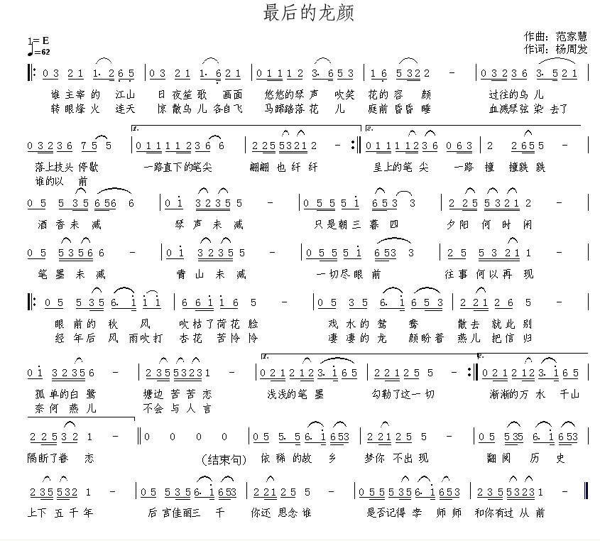 - [歌谱] 最后的思恋