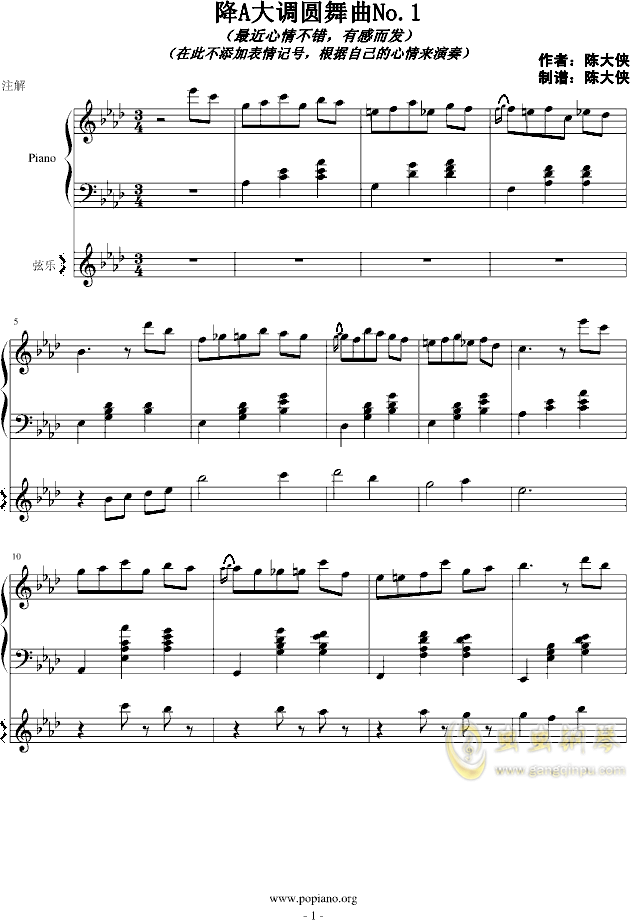降A大调圆舞曲No 1 18706805234